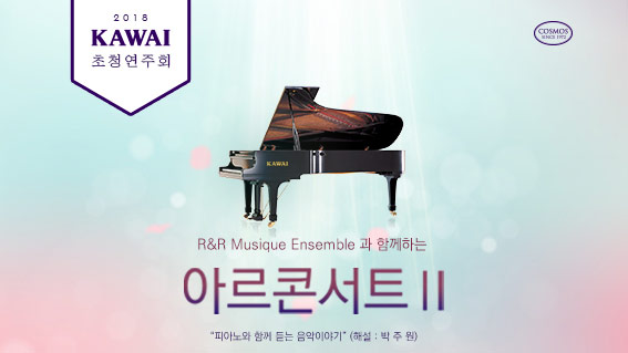 더 보기가와이 초청연주회 시리즈 2018 피아니스트 홍수연 리사이틀 일정 : 3월 29일(목) 7시 30분 코스모스홀 (코스모스악기 본사 8층) 주최 : (주)코스모스악기 KAWAI 협찬 : 음악춘추, 음연 홍수연 | Piano 예원학교 졸업, 현재 홈스...