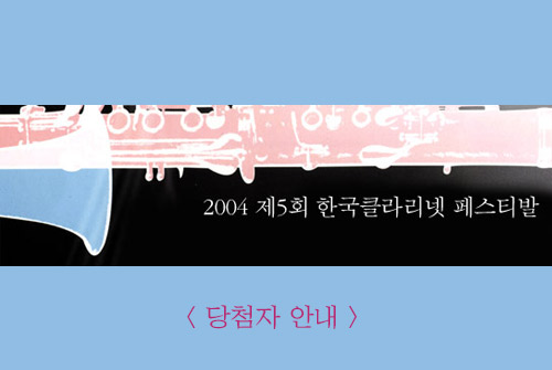 무더위를 식혀줄 클라리넷의 세계로 여러분을 초대합니다! "한국 클라리넷 페스티발" 티켓 당첨자 발표 이번 연주회 티켓을 수령하실 분 명단입니다. 응모해 주신 많은 분들께 진심으로 감사드립니다. 티켓은 두장씩 드리며, 티켓수령은 오늘부터 24일까지, 예술의 전당 건너편에 위치한 코스모스악기 1 F 로비에서 직접 수령하시면 됩니다. [약도] 근무시간 : 평일 7시, 토요일 6시 까지 일 시: 2004년 7월 24일(토) 오후 7시 30분 공연장 : 예술의전당 콘서트홀 PS. 코스모스악기 웹사이트 자유게시판에 공연후기 부탁드립니다! 티켓 미수령은 티켓을 두번 죽이는 거 아시죠 ?! 개인적인 사정으로 티켓을 수령하지 못하시는 분은 알려주세요... 공연티켓을 원하시는 다른 분에게 전달해 드리겠습니다 ^^ * 티켓을 수령하실 분 명단입니다 * 김갑성 solomonland |